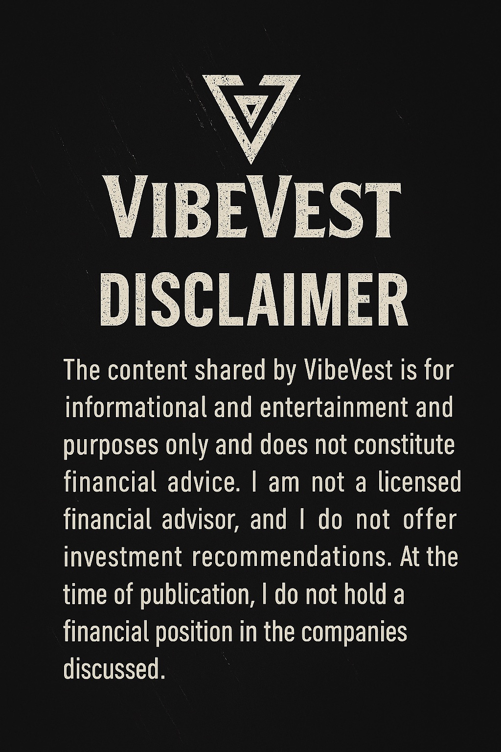 Disclaimer: This post is for informational and entertainment purposes only. It does not constitute investment advice, and nothing herein should be construed as a recommendation to buy or sell any securities. Always do your own research. VibeVest is not a registered investment advisor. Not Financial Advice.
